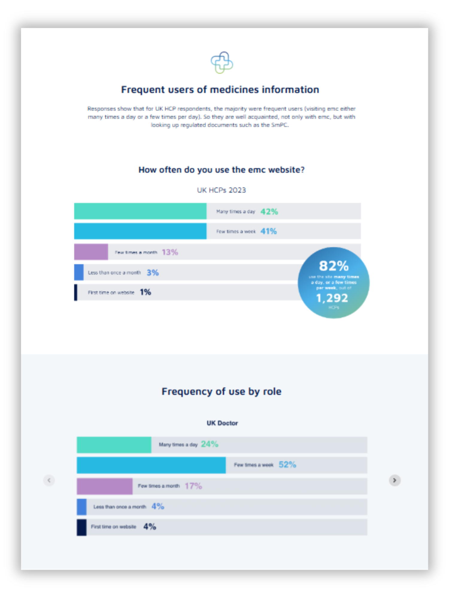 Results from the annual emc user survey, covering UK HCPs' (healthcare professionals') medicine information needs, challenges and search habits.